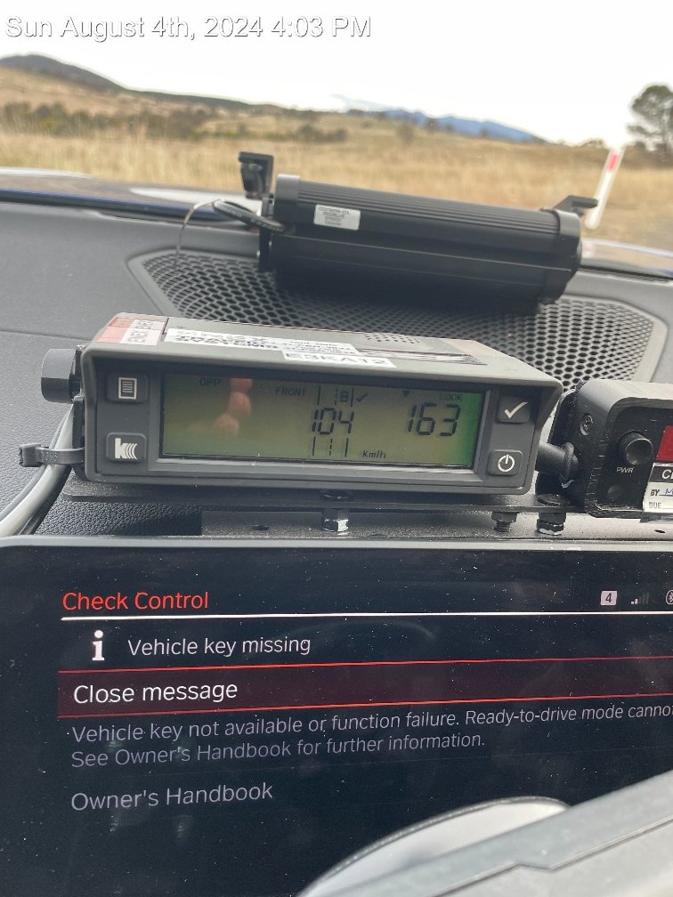 About 3.55pm on Sunday, 4 August 2024, ACT Road Policing were conducting mobile speed enforcement on Uriarra Road, Uriarra, when they detected a grey Subaru Levorg travelling at 163km/h in a signposted 100km/h zone.
