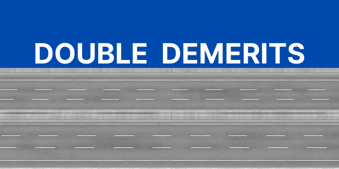 Double Demerit points will apply in the ACT from Thursday, 28 March until Monday, 1 April 2024. For all speeding, not wearing a seatbelt, riding without a helmet and mobile phone offences, double the usual demerit points will apply, and as a further long-weekend road safety measure, an additional demerit point applies for all other traffic offences.