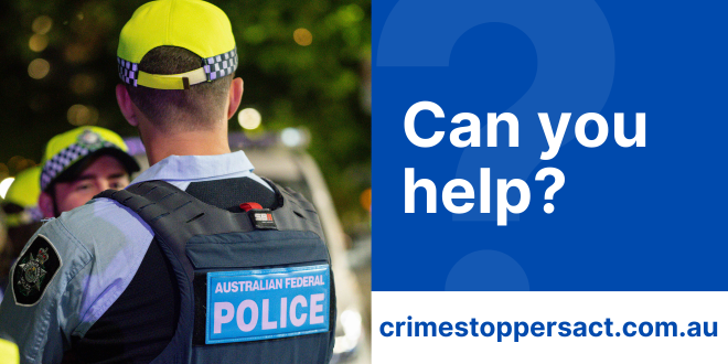 Anyone who can assist police is urged to contact Crime Stoppers via the Crime Stoppers ACT website. Please quote 8199221. Information can be provided anonymously.