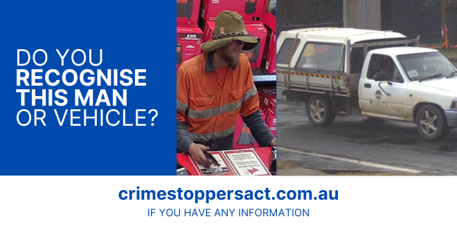 Anyone who can assist police is urged to contact Crime Stoppers via the Crime Stoppers ACT website. Please quote 8195914.