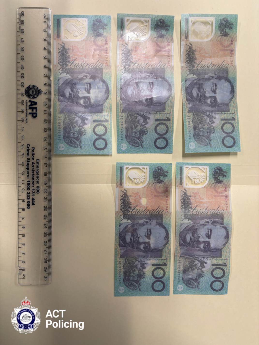 Anyone who has information about the production or distribution of counterfeit cash should contact Crime Stoppers via the Crime Stoppers ACT website. Information can be provided anonymously.