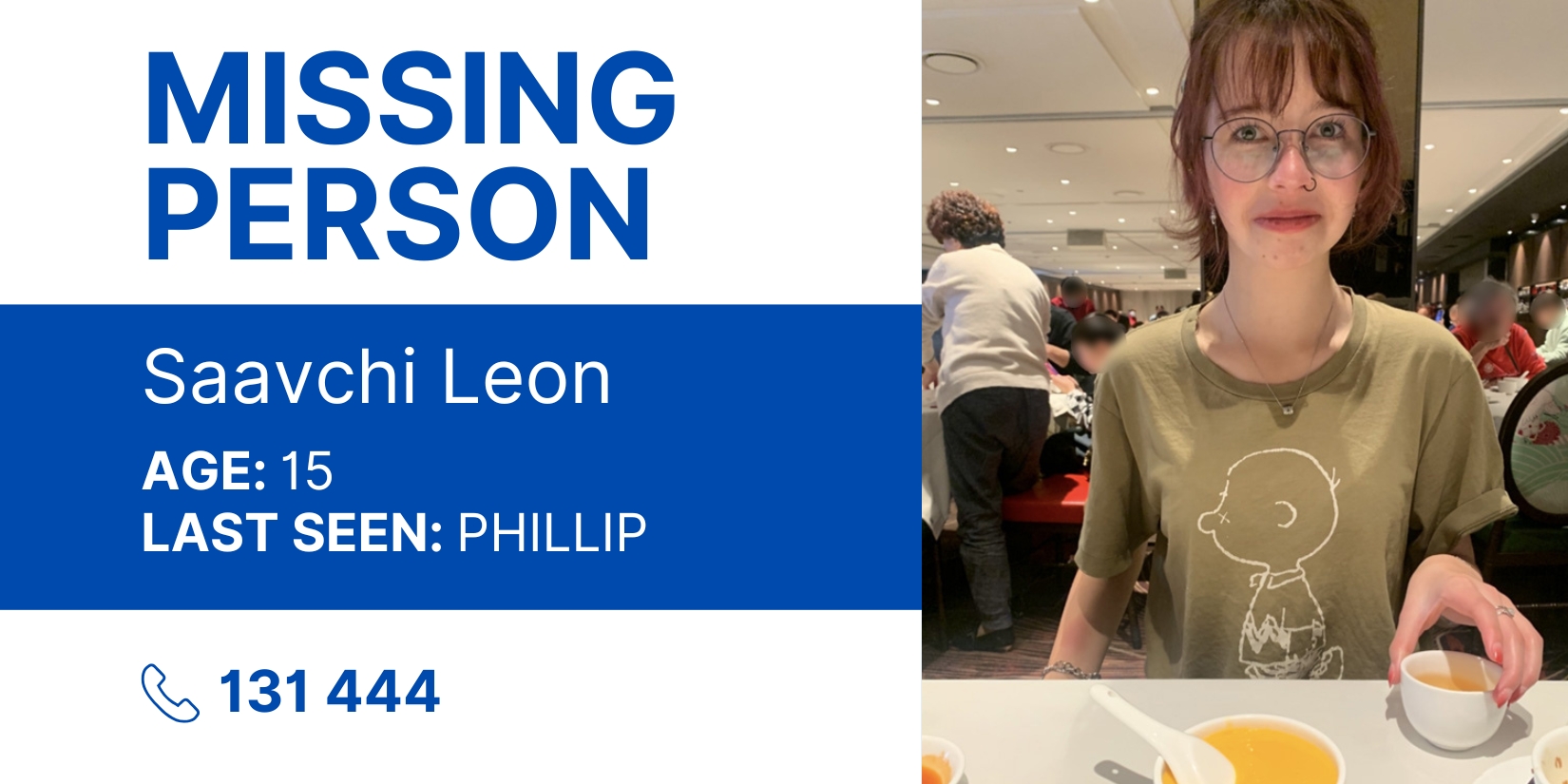 Anyone who has seen Saavchi or who may have information regarding her whereabouts is urged to contact ACT Policing on 131 444.