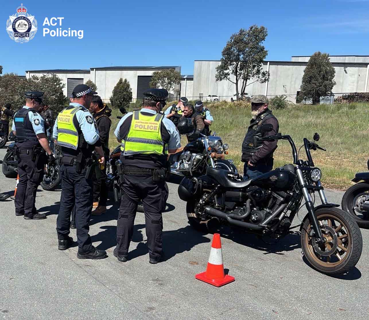 About 2:20pm yesterday (Wednesday 6 November) police received information that an interstate-based Outlaw Motorcycle Gang was travelling through Canberra and had stopped at a service station in Hume.