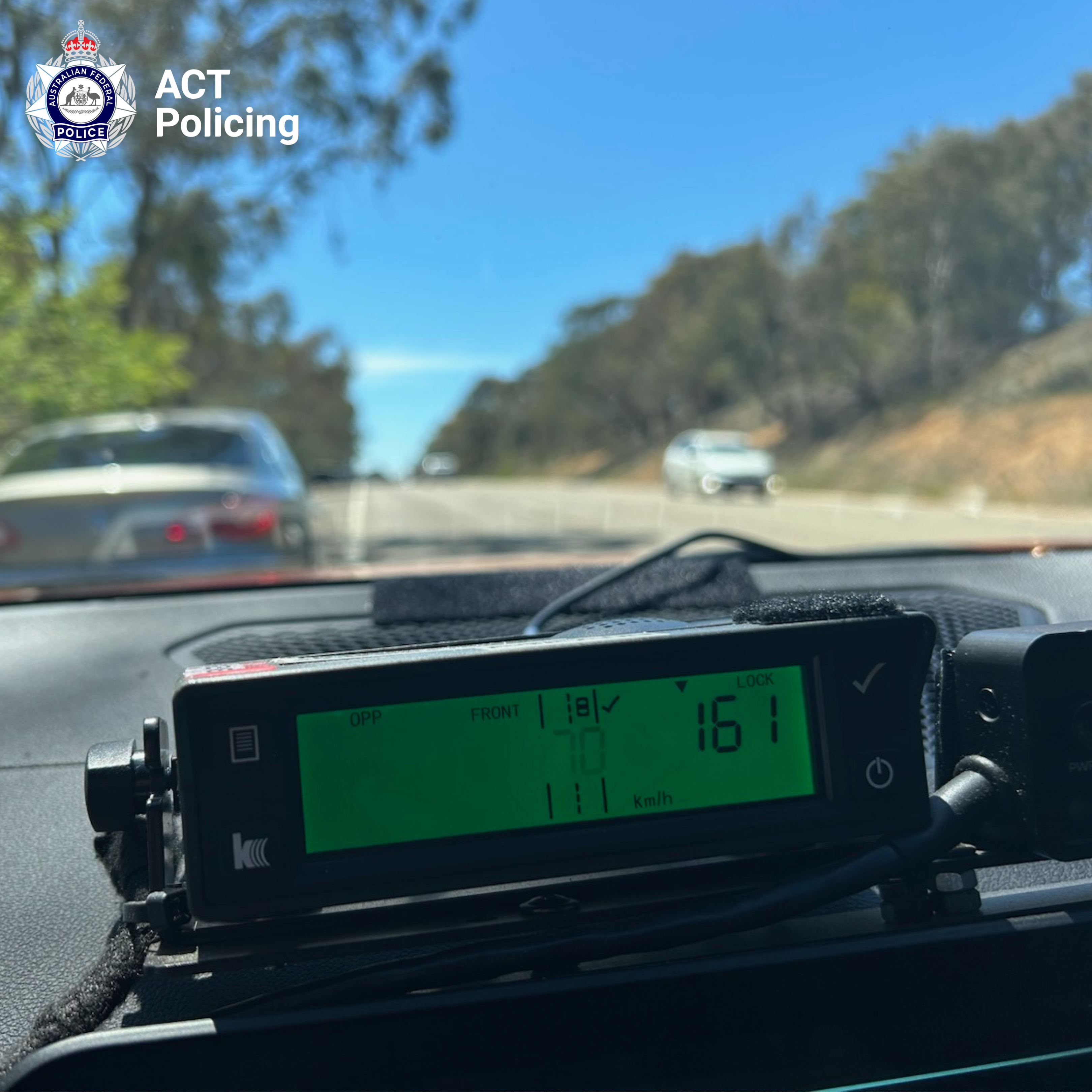 About 1:10pm (Thursday, 16 October 2025), police conducting patrols on William Hovell Drive in Whitlam detected a beige Volkswagen Passat travelling at 161 km/h in a signposted 90hm/h zone.
