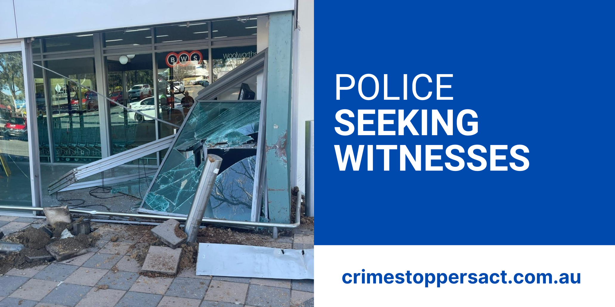 ACT Policing is seeking witnesses to a ram raid at Kippax Fair in Holt on Saturday.