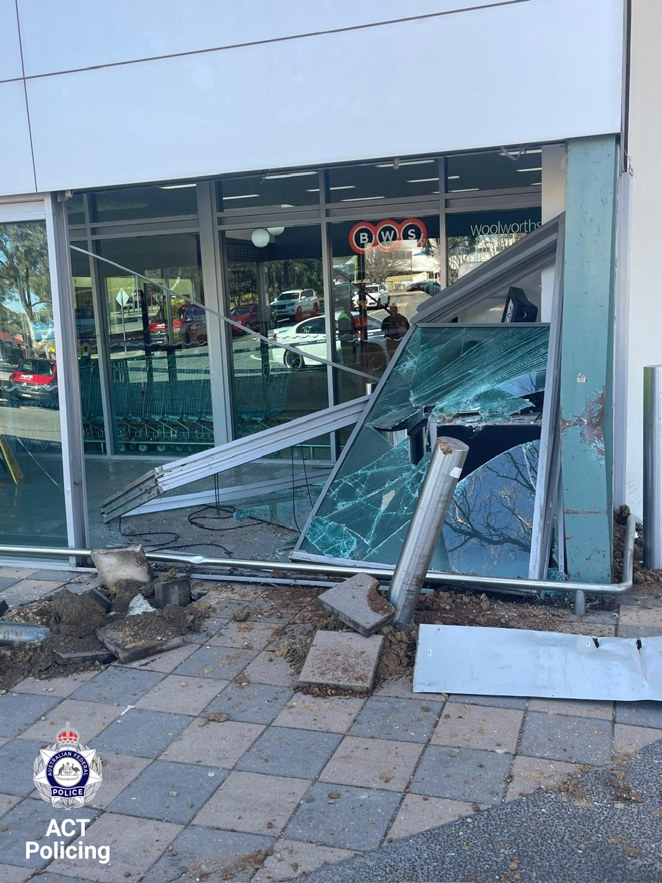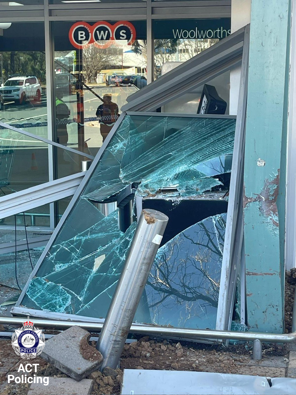 At around 6:30am Saturday morning (13 September 2025) police attended the shopping centre and discovered a stolen front loader had been driven into the front windows in an attempt to steal an ATM, causing significant damage.