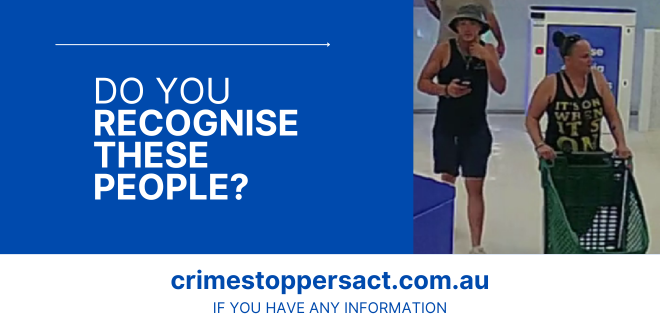 If you can identify the man or woman, or have any information about these incidents, please contact Crime Stoppers via the Crime Stoppers ACT website or on 1800 333 000. Please quote 8267770. Information can be provided anonymously.